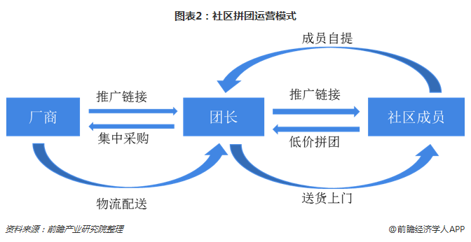社区拼团,指的是,以社区为中心,以团长(通常是宝妈、便利店经营者)为分发节点,消费者可以通过微信群、小程序等工具,拼团购买生鲜、日化用品等的新型购物形式。